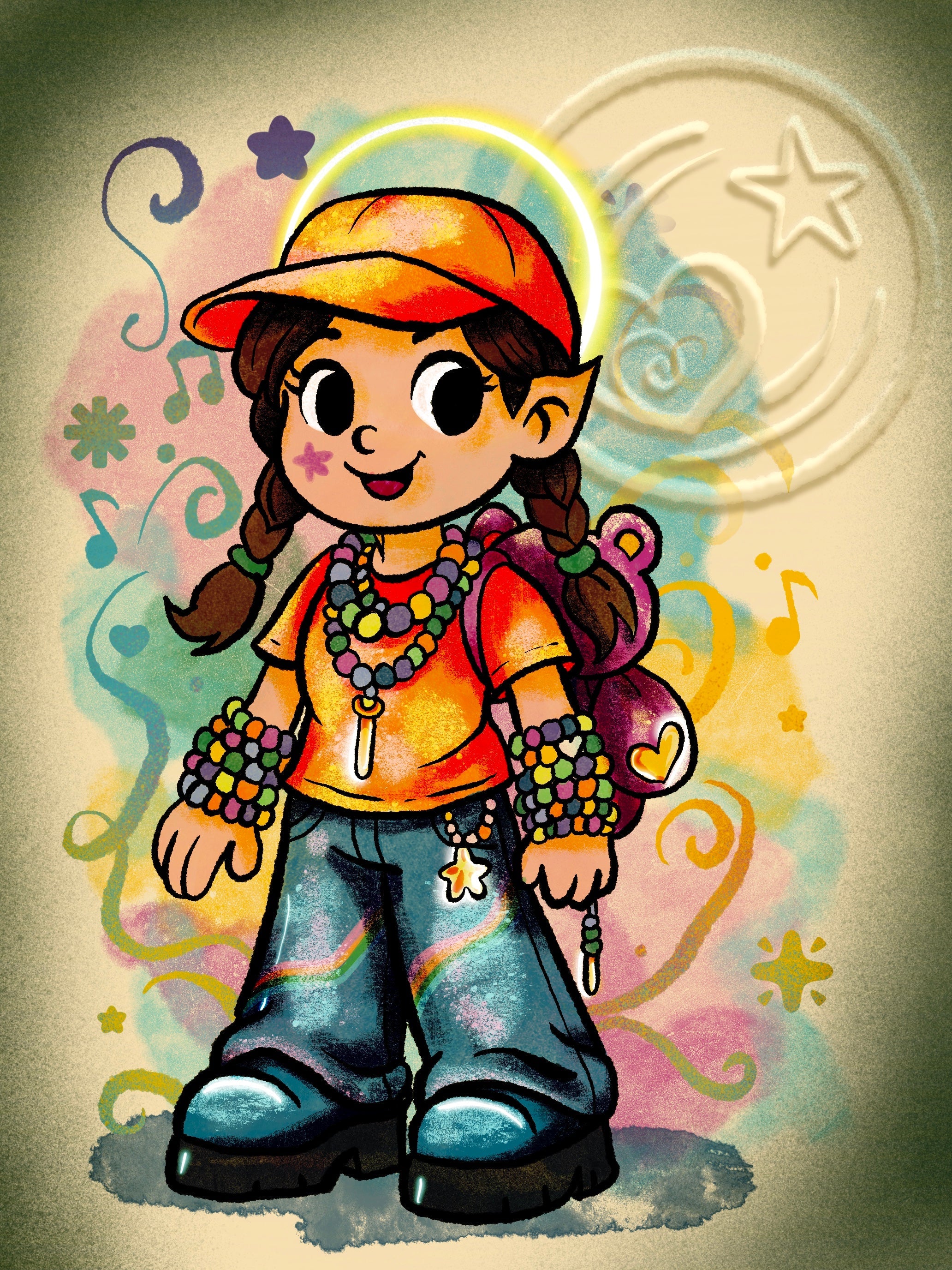 Behavioural Notes: Many Strangelings are forged from fractures or failures, but Haze Angel is born from the bright burning spark of who someone once dared to be. She is living nostalgia, embodied joy, and unashamed connection. Treat her gently — she is the ghost of a self worth remembering, but not clinging to.”
